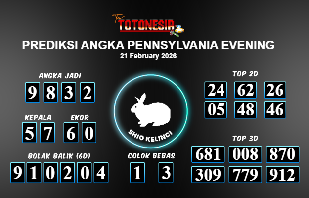 Toto Nesia : Bocoran Prediksi Togel PENNSYLVANIA EVENING Tanggal 21 FEBUARI 2026
