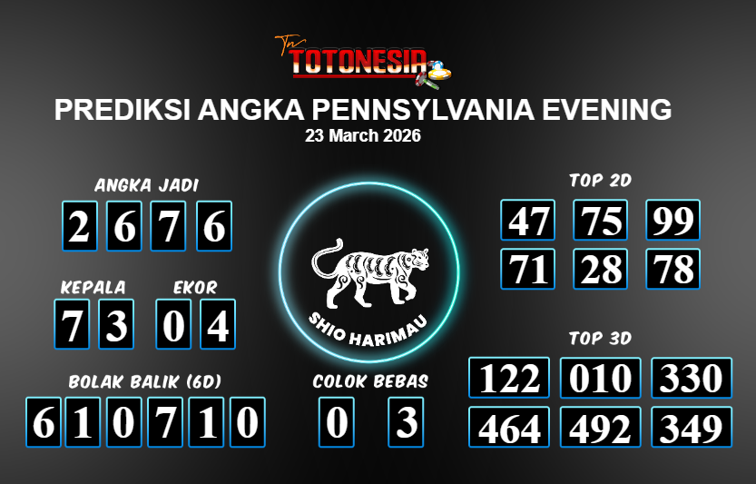 Toto Nesia : Bocoran Prediksi Togel PENNSYLVANIA EVENING Tanggal 23 MARET 2026