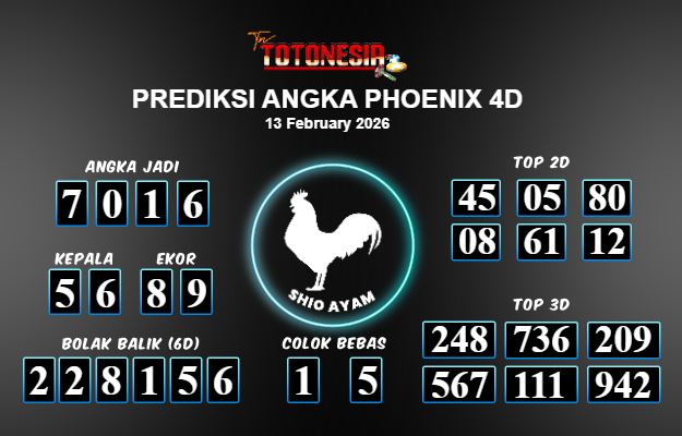 Toto Nesia : Bocoran Prediksi Togel PHOENIX 4D Tanggal 13 FEBUARI 2026