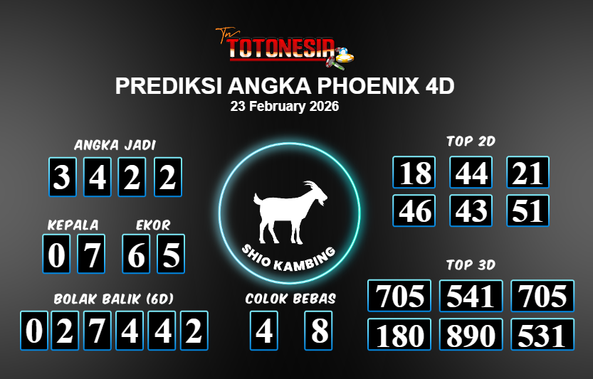 Toto Nesia : Bocoran Prediksi Togel PHOENIX 4D Tanggal 23 FEBUARI 2026