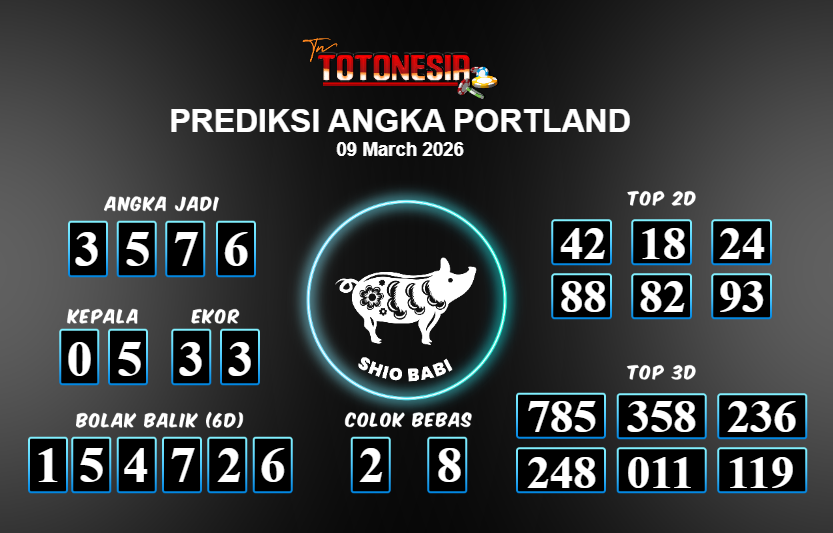Toto Nesia : Bocoran Prediksi Togel PORTLAND Tanggal 09 MARET 2026