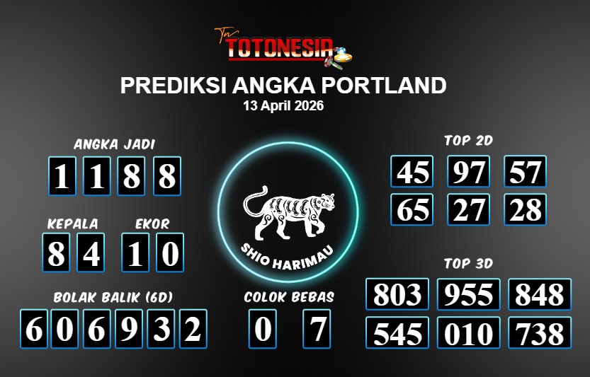 Prediksi PORTLAND adalah perhitungan nomor togel unggulan dari agen suhu togel yang menyajikan angka prediksi paling akurat, sehingga memberikan banyak keuntungan saat bermain di pasar togel PORTLAND. TotoNesia adalah prediksi dengan rasio kemenangan tertinggi di Indonesia. Sebagai penyedia togel yang dapat dipercaya, kami bertekad untuk memberikan ramalan togel yang handal dengan hadiah terbesarnya. Maka dari itu, jangan sampai terlewatkan prediksi bandar togel dengan hadiah terbanyak bet 100 dari pasar togel terbaik PORTLAND Daftar sekarang juga di bandar.