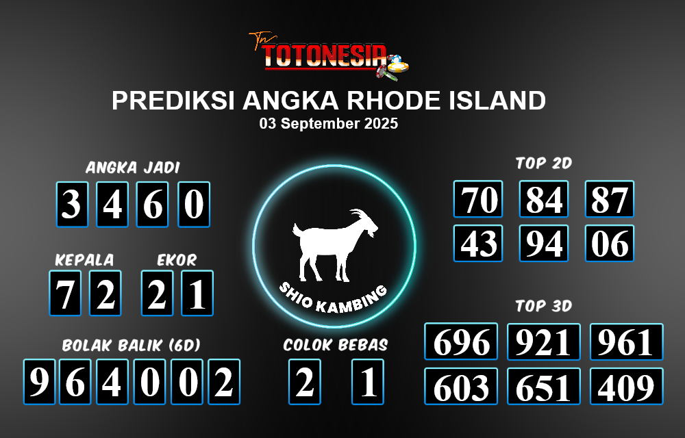 Toto Nesia : Bocoran Prediksi Togel RHODE ISLAND Tanggal 03 SEPTEMBER 2025