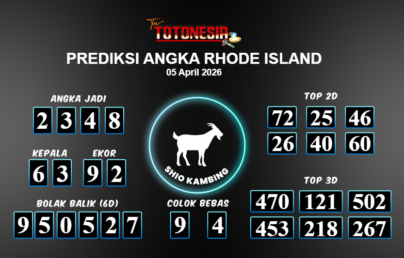 Toto Nesia : Bocoran Prediksi Togel RHODE ISLAND Tanggal 05 APRIL 2026