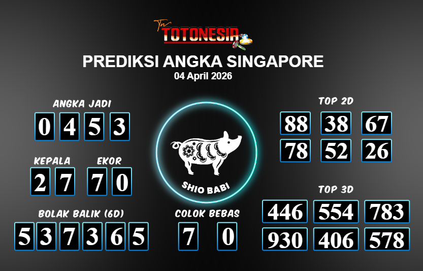 Prediksi SINGAPORE adalah perhitungan nomor togel unggulan dari agen suhu togel yang menyajikan angka prediksi paling akurat, sehingga memberikan banyak keuntungan saat bermain di pasar togel SINGAPORE . TotoNesia adalah prediksi dengan rasio kemenangan tertinggi di Indonesia. Sebagai penyedia togel yang dapat dipercaya, kami bertekad untuk memberikan ramalan togel yang handal dengan hadiah terbesarnya. Maka dari itu, jangan sampai terlewatkan prediksi bandar togel dengan hadiah terbanyak bet 100 dari pasar togel terbaik SINGAPORE Daftar sekarang juga di bandar.