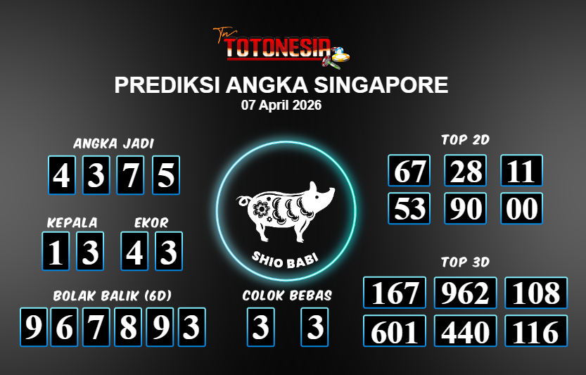 Prediksi SINGAPORE adalah perhitungan nomor togel unggulan dari agen suhu togel yang menyajikan angka prediksi paling akurat, sehingga memberikan banyak keuntungan saat bermain di pasar togel SINGAPORE . TotoNesia adalah prediksi dengan rasio kemenangan tertinggi di Indonesia. Sebagai penyedia togel yang dapat dipercaya, kami bertekad untuk memberikan ramalan togel yang handal dengan hadiah terbesarnya. Maka dari itu, jangan sampai terlewatkan prediksi bandar togel dengan hadiah terbanyak bet 100 dari pasar togel terbaik SINGAPORE Daftar sekarang juga di bandar.