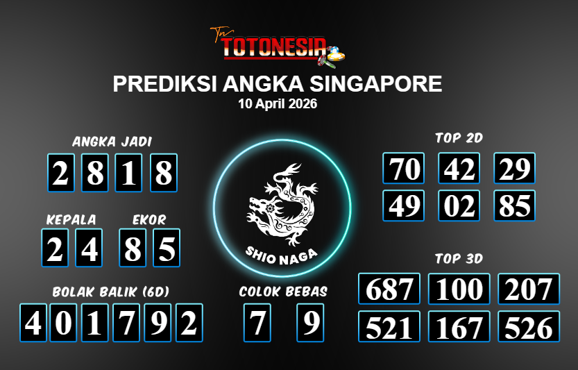 Prediksi SINGAPORE adalah perhitungan nomor togel unggulan dari agen suhu togel yang menyajikan angka prediksi paling akurat, sehingga memberikan banyak keuntungan saat bermain di pasar togel SINGAPORE . TotoNesia adalah prediksi dengan rasio kemenangan tertinggi di Indonesia. Sebagai penyedia togel yang dapat dipercaya, kami bertekad untuk memberikan ramalan togel yang handal dengan hadiah terbesarnya. Maka dari itu, jangan sampai terlewatkan prediksi bandar togel dengan hadiah terbanyak bet 100 dari pasar togel terbaik SINGAPORE Daftar sekarang juga di bandar.