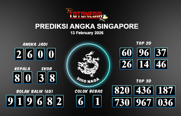 Toto Nesia : Bocoran Prediksi Togel SINGAPORE Tanggal 13 FEBUARI 2026