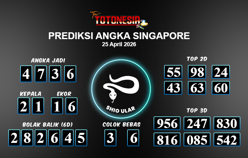Prediksi SINGAPORE adalah perhitungan nomor togel unggulan dari agen suhu togel yang menyajikan angka prediksi paling akurat, sehingga memberikan banyak keuntungan saat bermain di pasar togel SINGAPORE . TotoNesia adalah prediksi dengan rasio kemenangan tertinggi di Indonesia. Sebagai penyedia togel yang dapat dipercaya, kami bertekad untuk memberikan ramalan togel yang handal dengan hadiah terbesarnya. Maka dari itu, jangan sampai terlewatkan prediksi bandar togel dengan hadiah terbanyak bet 100 dari pasar togel terbaik SINGAPORE Daftar sekarang juga di bandar.