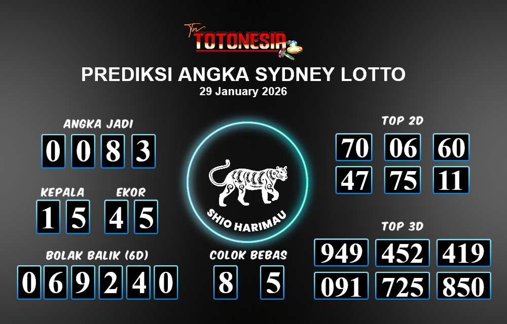 Toto Nesia : Bocoran Prediksi Togel SYDNEY LOTTO Tanggal 29 JANUARI 2026