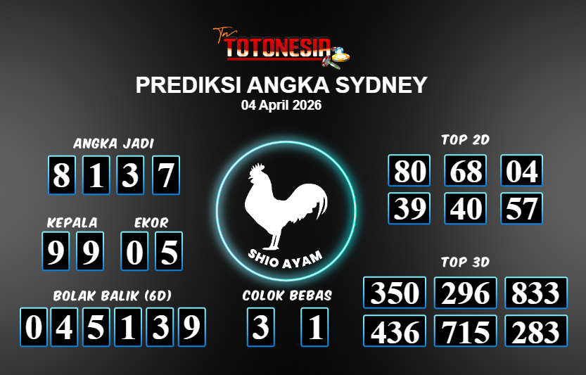 Prediksi SYDNEY adalah perhitungan nomor togel unggulan dari agen suhu togel yang menyajikan angka prediksi paling akurat, sehingga memberikan banyak keuntungan saat bermain di pasar togel SYDNEY . TotoNesia adalah prediksi dengan rasio kemenangan tertinggi di Indonesia. Sebagai penyedia togel yang dapat dipercaya, kami bertekad untuk memberikan ramalan togel yang handal dengan hadiah terbesarnya. Maka dari itu, jangan sampai terlewatkan prediksi bandar togel dengan hadiah terbanyak bet 100 dari pasar togel terbaik SYDNEY Daftar sekarang juga di bandar.