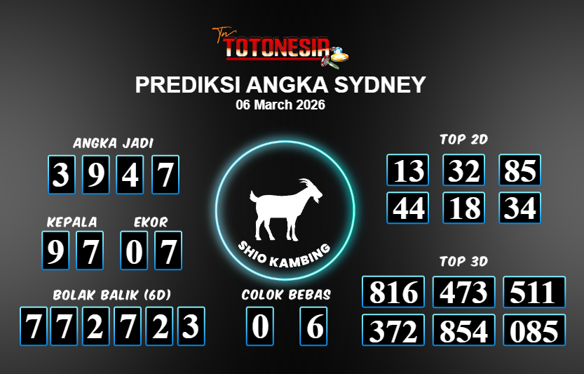 Prediksi SYDNEY adalah perhitungan nomor togel unggulan dari agen suhu togel yang menyajikan angka prediksi paling akurat, sehingga memberikan banyak keuntungan saat bermain di pasar togel SYDNEY . TotoNesia adalah prediksi dengan rasio kemenangan tertinggi di Indonesia. Sebagai penyedia togel yang dapat dipercaya, kami bertekad untuk memberikan ramalan togel yang handal dengan hadiah terbesarnya. Maka dari itu, jangan sampai terlewatkan prediksi bandar togel dengan hadiah terbanyak bet 100 dari pasar togel terbaik SYDNEY Daftar sekarang juga di bandar.