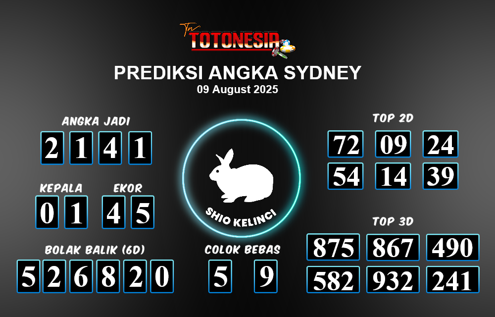 Toto Nesia : Bocoran Prediksi Togel SYDNEY Tanggal 09 Agustus 2025