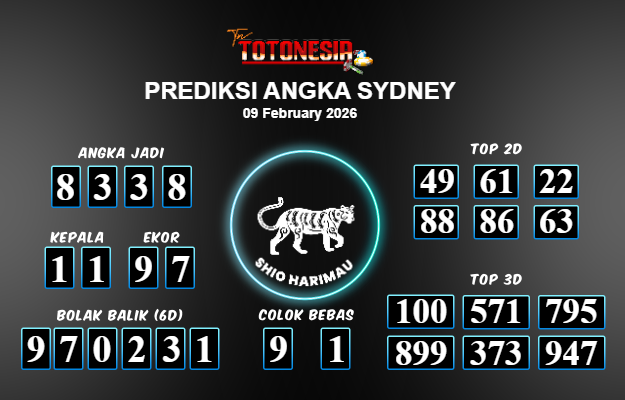 Toto Nesia : Bocoran Prediksi Togel SYDNEY Tanggal 09 FEBUARI 2026
