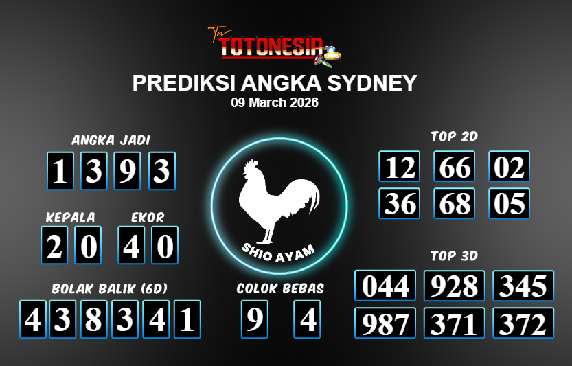 Toto Nesia : Bocoran Prediksi Togel SYDNEY Tanggal 09 MARET 2026