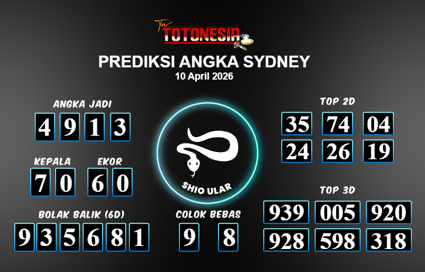 Toto Nesia : Bocoran Prediksi Togel SYDNEY Tanggal 10 APRIL 2026