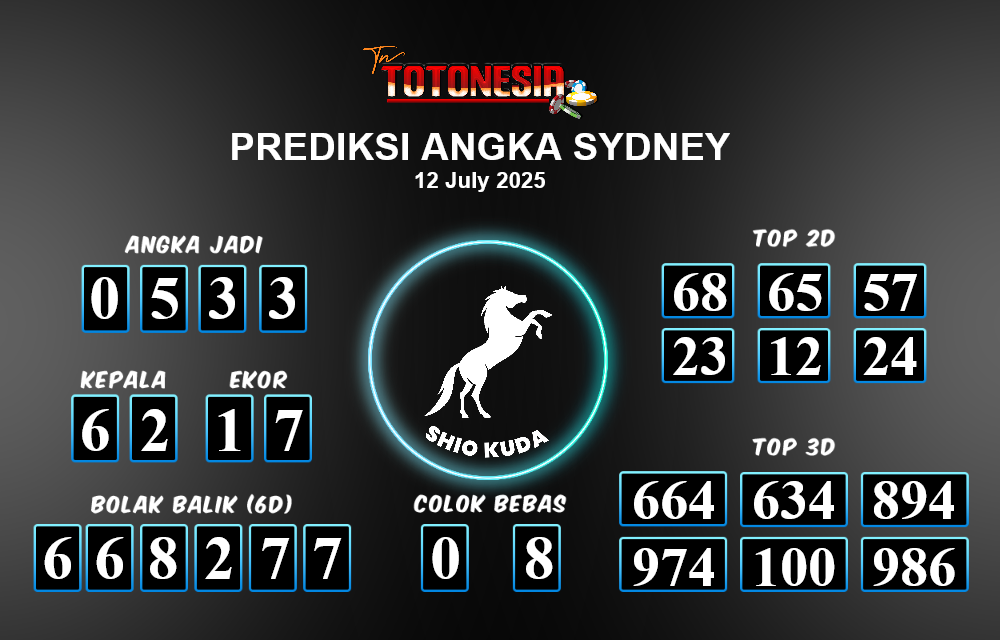 Toto Nesia : Bocoran Prediksi Togel SYDNEY Tanggal 12 July 2025