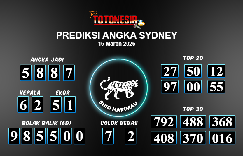 Toto Nesia : Bocoran Prediksi Togel SYDNEY Tanggal 16 MARET 2026