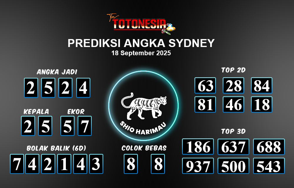 Toto Nesia : Bocoran Prediksi Togel SYDNEY Tanggal 18 SEPTEMBER 2025