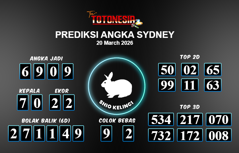 Prediksi SYDNEY adalah perhitungan nomor togel unggulan dari agen suhu togel yang menyajikan angka prediksi paling akurat, sehingga memberikan banyak keuntungan saat bermain di pasar togel SYDNEY . TotoNesia adalah prediksi dengan rasio kemenangan tertinggi di Indonesia. Sebagai penyedia togel yang dapat dipercaya, kami bertekad untuk memberikan ramalan togel yang handal dengan hadiah terbesarnya. Maka dari itu, jangan sampai terlewatkan prediksi bandar togel dengan hadiah terbanyak bet 100 dari pasar togel terbaik SYDNEY Daftar sekarang juga di bandar.