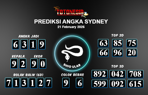 Toto Nesia : Bocoran Prediksi Togel SYDNEY Tanggal 21 FEBUARI 2026