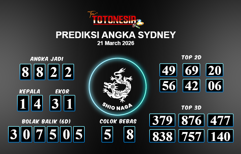 Prediksi SYDNEY adalah perhitungan nomor togel unggulan dari agen suhu togel yang menyajikan angka prediksi paling akurat, sehingga memberikan banyak keuntungan saat bermain di pasar togel SYDNEY . TotoNesia adalah prediksi dengan rasio kemenangan tertinggi di Indonesia. Sebagai penyedia togel yang dapat dipercaya, kami bertekad untuk memberikan ramalan togel yang handal dengan hadiah terbesarnya. Maka dari itu, jangan sampai terlewatkan prediksi bandar togel dengan hadiah terbanyak bet 100 dari pasar togel terbaik SYDNEY Daftar sekarang juga di bandar.
