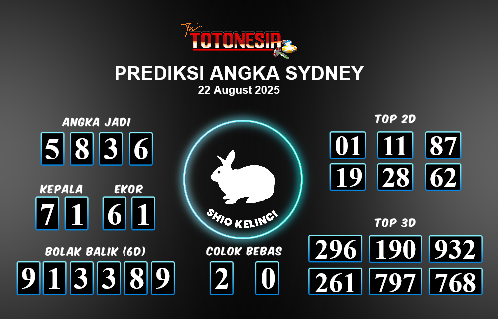 Toto Nesia : Bocoran Prediksi Togel SYDNEY Tanggal 22 Agustus 2025