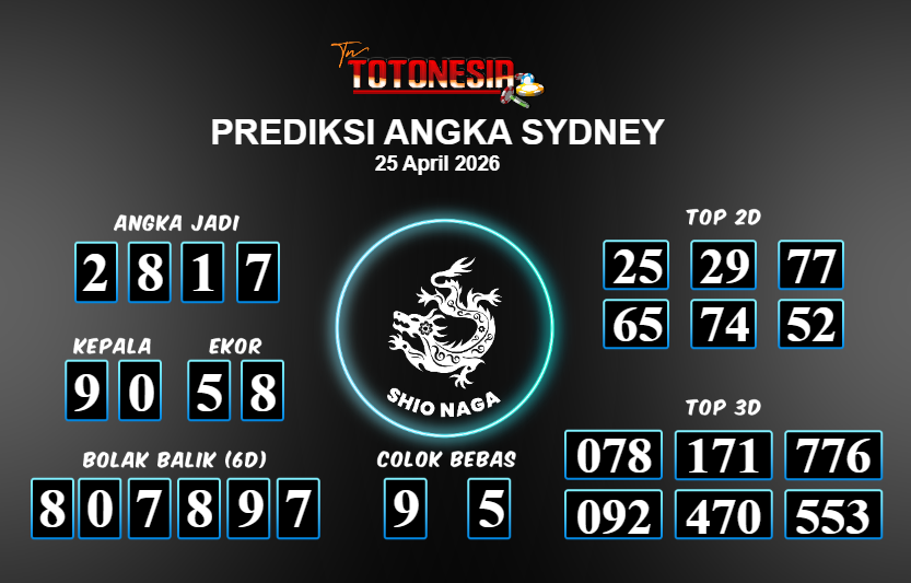 Toto Nesia : Bocoran Prediksi Togel SYDNEY Tanggal 25 APRIL 2026