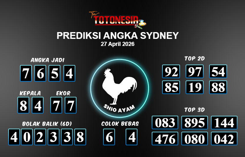 Toto Nesia : Bocoran Prediksi Togel SYDNEY Tanggal 27 APRIL 2026