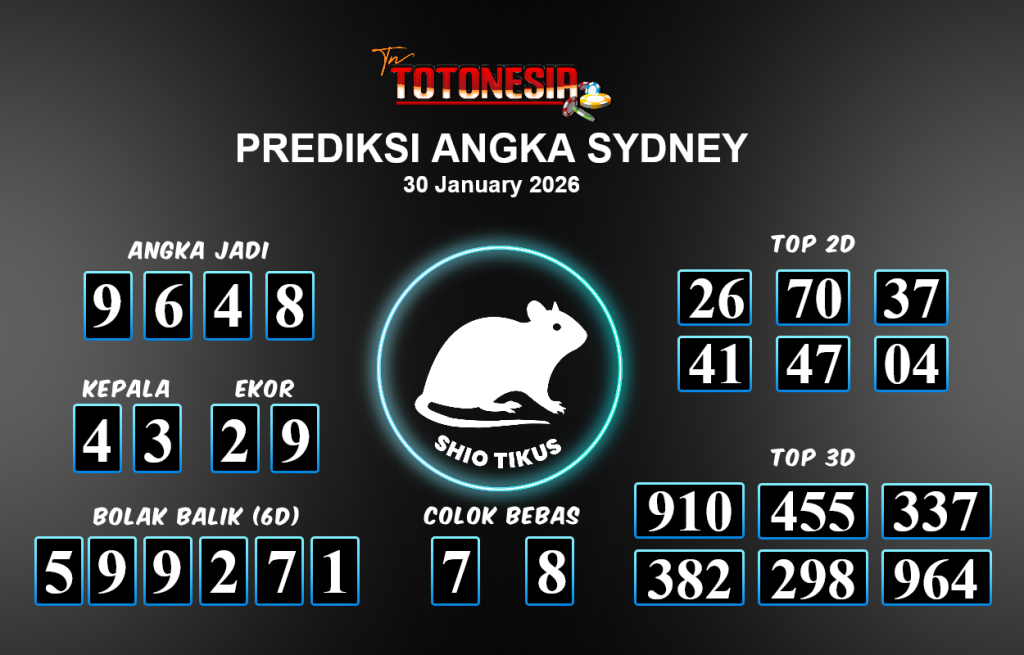 Toto Nesia : Bocoran Prediksi Togel SYDNEY Tanggal 30 JANUARI 2026
