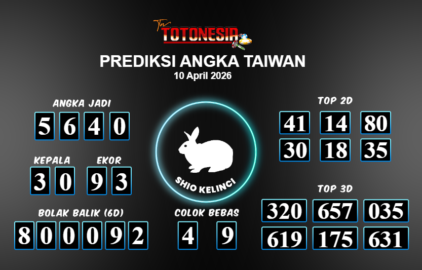 Toto Nesia : Bocoran Prediksi Togel TAIWAN Tanggal 10 APRIL 2026