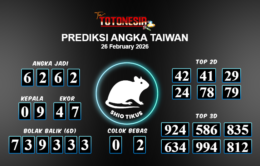 Toto Nesia : Bocoran Prediksi Togel TAIWAN Tanggal 26 FEBUARI 2026