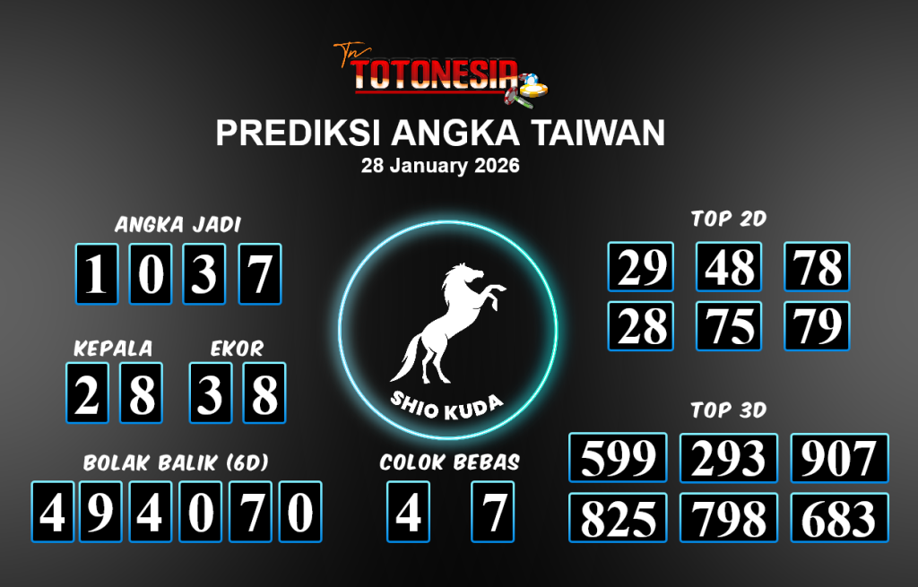 Prediksi TAIWAN adalah perhitungan nomor togel unggulan dari agen suhu togel yang menyajikan angka prediksi paling akurat, sehingga memberikan banyak keuntungan saat bermain di pasar togel TAIWAN . TotoNesia adalah prediksi dengan rasio kemenangan tertinggi di Indonesia. Sebagai penyedia togel yang dapat dipercaya, kami bertekad untuk memberikan ramalan togel yang handal dengan hadiah terbesarnya. Maka dari itu, jangan sampai terlewatkan prediksi bandar togel dengan hadiah terbanyak bet 100 dari pasar togel terbaik TAIWAN daftar sekarang juga di bandar.
