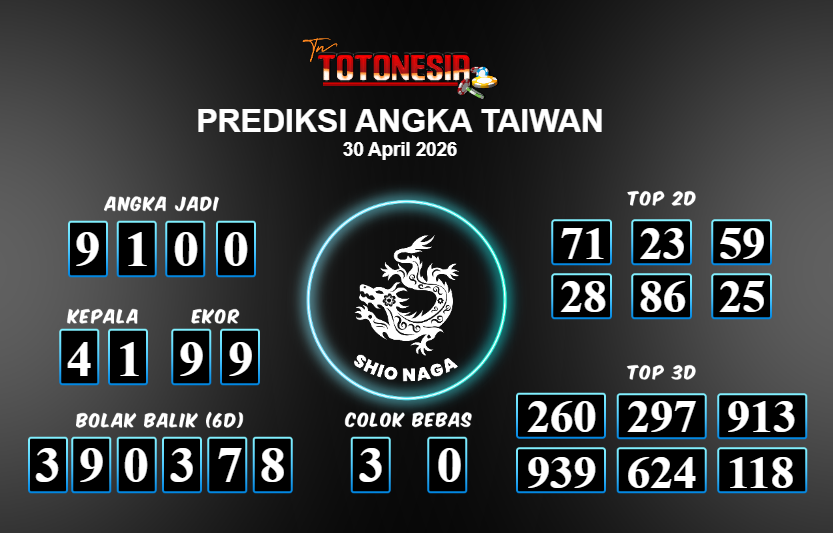 Toto Nesia : Bocoran Prediksi Togel TAIWAN Tanggal 30 APRIL 2026