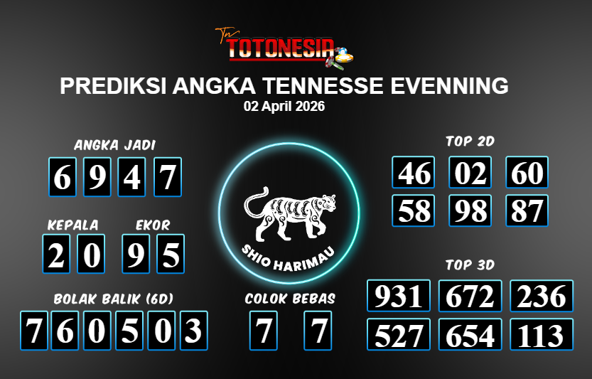 Toto Nesia : Bocoran Prediksi Togel TENNESSE EVENNING Tanggal 02 APRIL 2026
