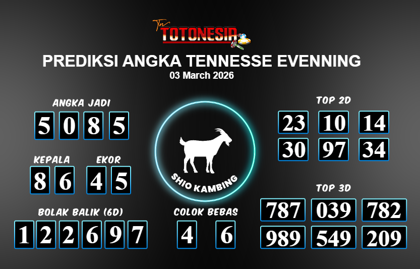 Toto Nesia : Bocoran Prediksi Togel TENNESSE EVENNING Tanggal 03 MARET 2026
