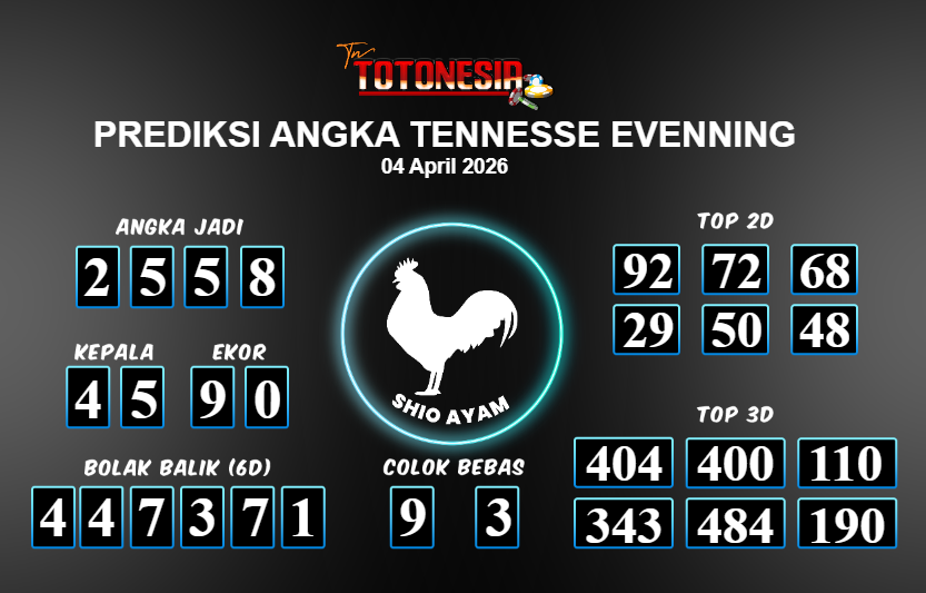 Toto Nesia : Bocoran Prediksi Togel TENNESSE EVENNING Tanggal 04 APRIL 2026