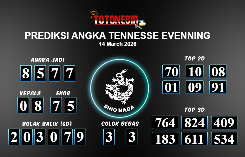 Toto Nesia : Bocoran Prediksi Togel TENNESSE EVENNING Tanggal 14 MARET 2026