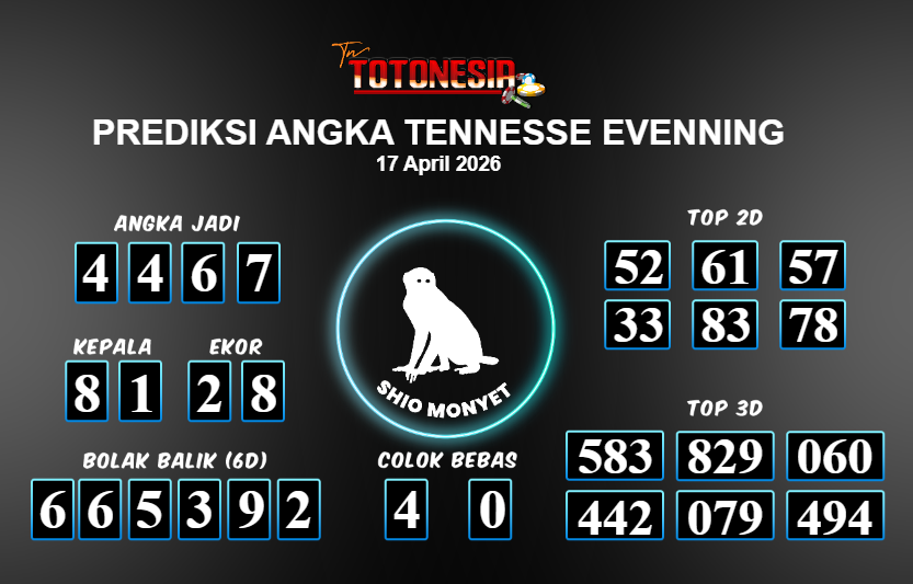 Toto Nesia : Bocoran Prediksi Togel TENNESSE EVENNING Tanggal 17 APRIL 2026