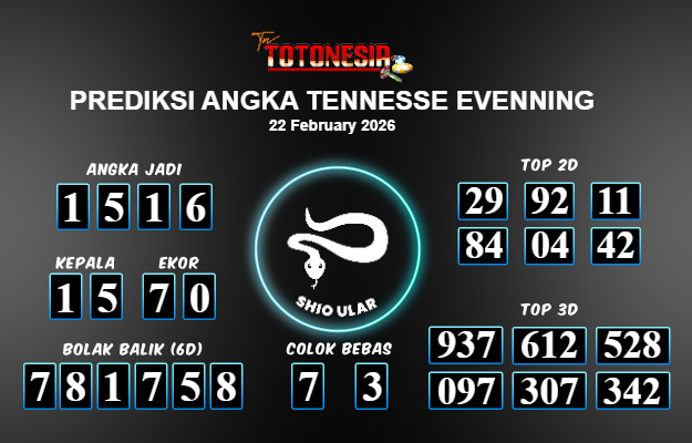 Toto Nesia : Bocoran Prediksi Togel TENNESSE EVENNING Tanggal 22 FEBUARI 2026