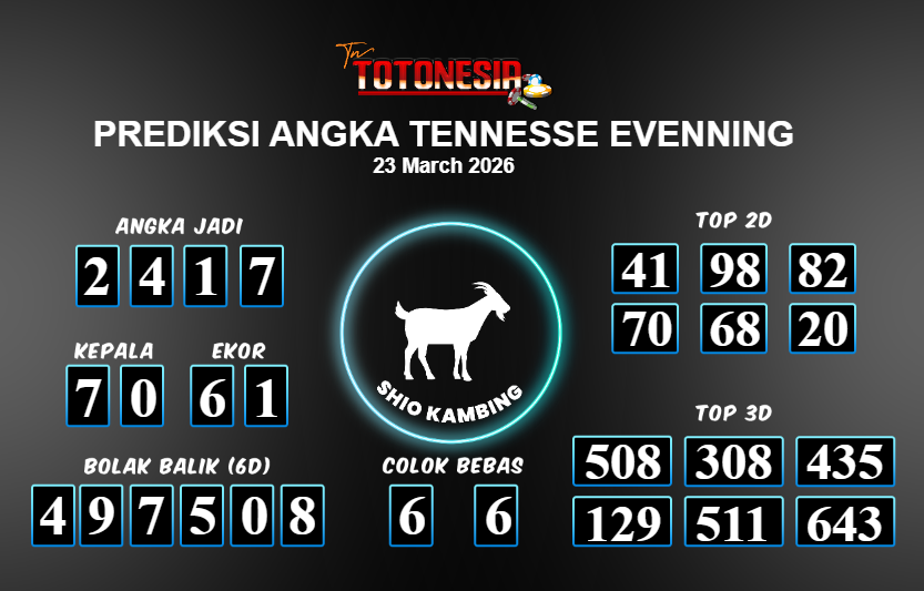 Toto Nesia : Bocoran Prediksi Togel TENNESSE EVENNING Tanggal 23 MARET 2026