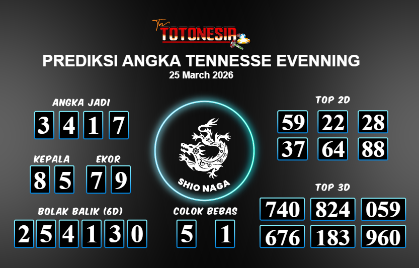 Toto Nesia : Bocoran Prediksi Togel TENNESSE EVENNING Tanggal 25 MARET 2026