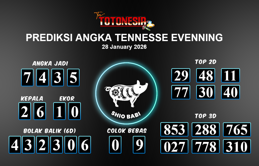 Prediksi TENNESSE EVENNINGadalah perhitungan nomor togel unggulan dari agen suhu togel yang menyajikan angka prediksi paling akurat, sehingga memberikan banyak keuntungan saat bermain di pasar togel TENNESSE EVENNING. TotoNesia adalah prediksi dengan rasio kemenangan tertinggi di Indonesia. Sebagai penyedia togel yang dapat dipercaya, kami bertekad untuk memberikan ramalan togel yang handal dengan hadiah terbesarnya. Maka dari itu, jangan sampai terlewatkan prediksi bandar togel dengan hadiah terbanyak bet 100 dari pasar togel terbaik TENNESSE EVENNING daftar sekarang juga di bandar.