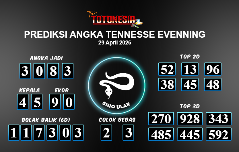 Toto Nesia : Bocoran Prediksi Togel TENNESSE EVENNING Tanggal 29 APRIL 2026