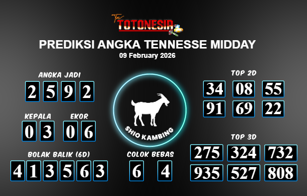 Toto Nesia : Bocoran Prediksi Togel TENNESSE MIDDAY Tanggal 09 FEBUARI 2026