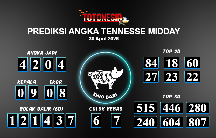 Toto Nesia : Bocoran Prediksi Togel TENNESSE MIDDAY Tanggal 30 APRIL 2026