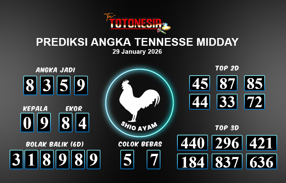 Toto Nesia : Bocoran Prediksi Togel TENNESSE MIDDAY Tanggal 30 JANUARI 2026