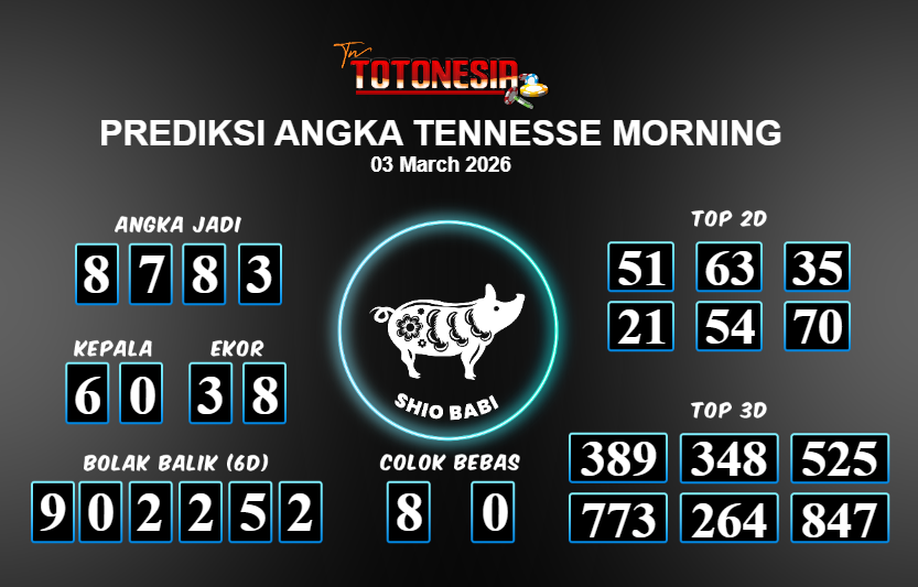 Toto Nesia : Bocoran Prediksi Togel TENNESSE MORNING Tanggal 03 MARET 2026