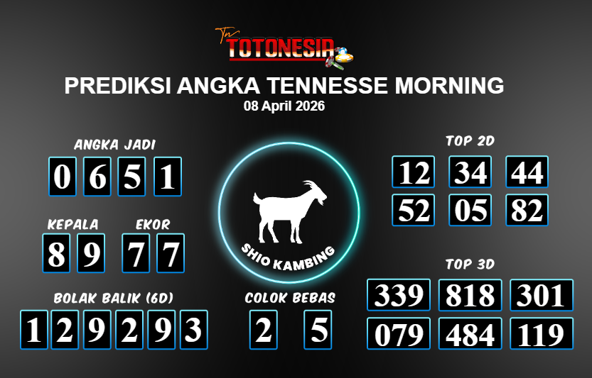Toto Nesia : Bocoran Prediksi Togel TENNESSE MORNING Tanggal 08 APRIL 2026