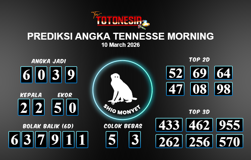 Prediksi TENNESSE MORNING adalah perhitungan nomor togel unggulan dari agen suhu togel yang menyajikan angka prediksi paling akurat, sehingga memberikan banyak keuntungan saat bermain di pasar togel TENNESSE MORNING . TotoNesia adalah prediksi dengan rasio kemenangan tertinggi di Indonesia. Sebagai penyedia togel yang dapat dipercaya, kami bertekad untuk memberikan ramalan togel yang handal dengan hadiah terbesarnya. Maka dari itu, jangan sampai terlewatkan prediksi bandar togel dengan hadiah terbanyak bet 100 dari pasar togel terbaik TENNESSE MORNING Daftar sekarang juga di bandar.